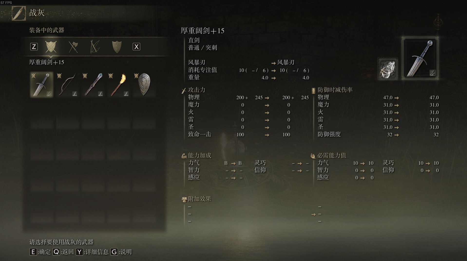 进入战灰界面之后我们可以看到很多的武器,选择我们想附着战灰的武器就可以弹出另一个界面了,在这个界面中选择战灰之后就附着成功了。另外附着战灰之后我们进入战斗界面可以使用shift加鼠标右键的方式释放独有的战技,这些战技都可以对敌人造成高额的伤害,所以大家一定要谨慎使用。