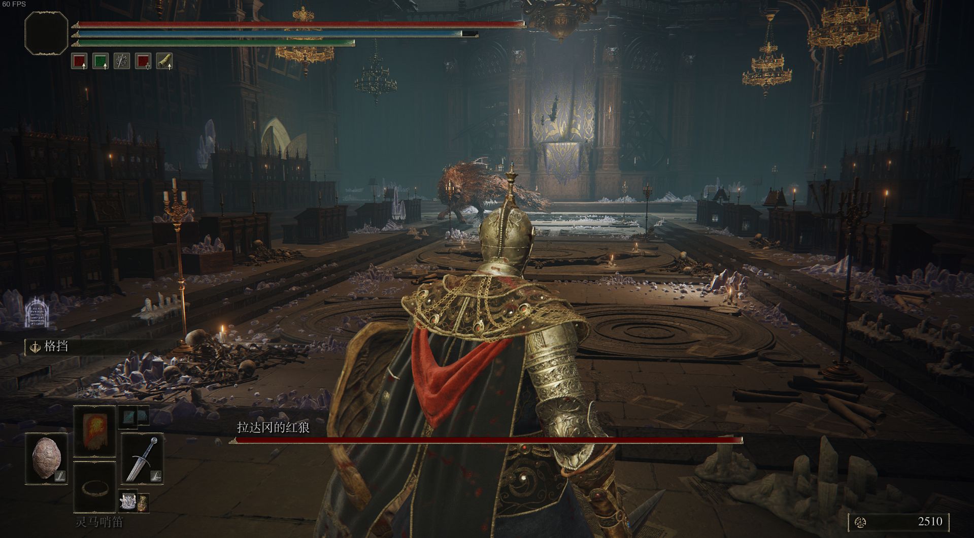 在这里把血量回满之后就要遇到达拉冈的红狼了,这个赐福点之后距离boss还有一段不小的距离,在这段过程中的小怪都很强悍。不仅攻速快而且伤害也很高,所以大家可以以偷袭的方法来把它们都杀掉,之后走到最后的金色雾气前进入就能遇到达拉冈的红狼了。