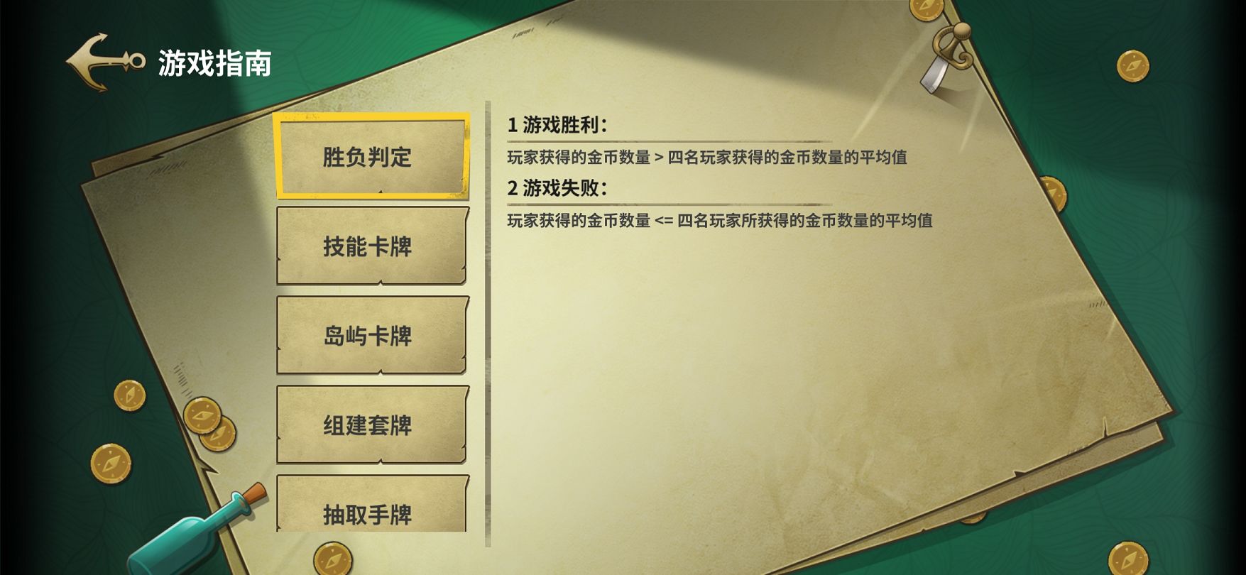 在游戏中,玩家需要和其他三名玩家组成小队出海探险,在路上会经过无数小岛,在途中玩家不仅要赚取金币,也要防止队友背刺,避免钱人两失的情况。赢得胜利的条件为获得的金币要高于四个玩家的平均值,也就是说,想赢的话主要是赚钱,击杀队友并不是重点。