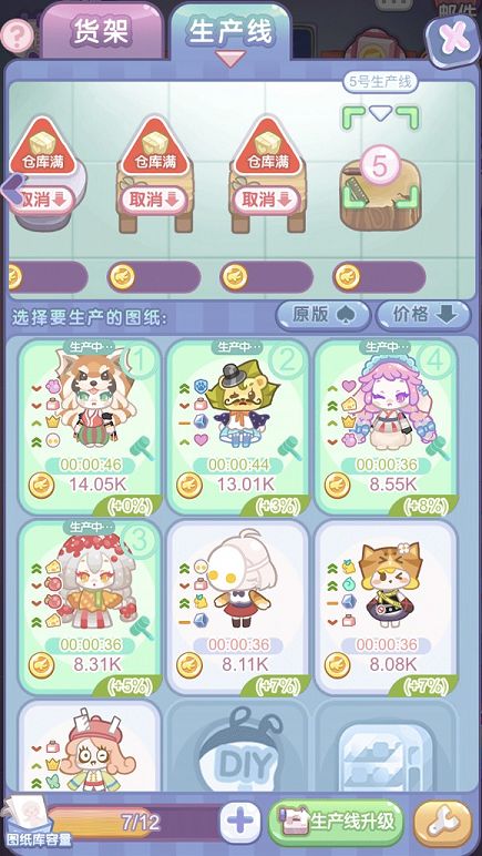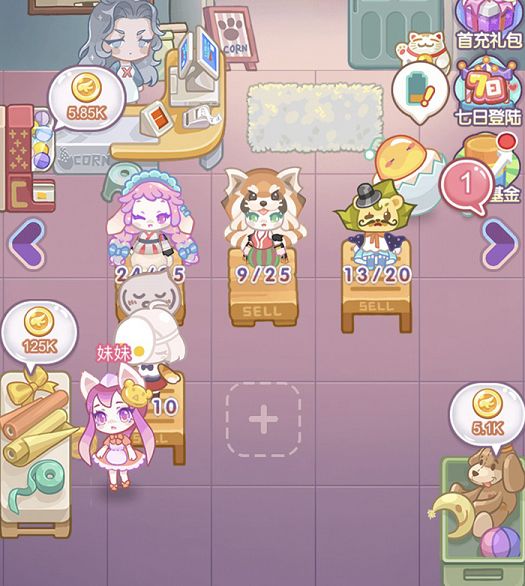 游戏的区域分为打工区、店铺区和生产区。打工区就是宠物、妹妹租借,能够为我们带来一定的收益和加成。店铺去和生产区是游戏的核心,店铺区分为货架和NPC互动两个功能。有资本积累了之后建议尽快升级生产线和货架,并且尽可能购置店内的各项设施。这些行为都能够提升我们的店铺星评,这样可以解锁更多的高级设施,提升我们的货架以及生产线的等级上限。