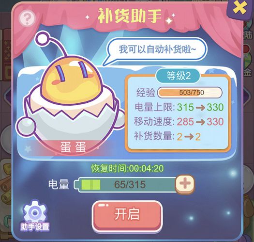 第二个技巧就是善于利用游戏中的工具,首先就是游戏中两个自动机器人。销售展厅内有补货助手,能够帮助我们自动上架玩偶。生产界面中有加速助手,经过设置之后能够提升我们生产线的制作速度,从而扩充我们的玩偶库存。剩下的两个工具就是销售阶段的传单机以及制造阶段的加速了,这两个功能其实就是游戏中的点击玩法,在有时间的时候点击就可以了。
