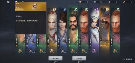 4、招募,我们可以消耗元宝或者银锭来招募侠客,招募是侠客获得的最直接的方式,但是在招募中也有几率出一些侠客碎片,而且获取到重复的侠客系统也会自动分解为侠客碎片。这些碎片就可以用来给侠客升星了。