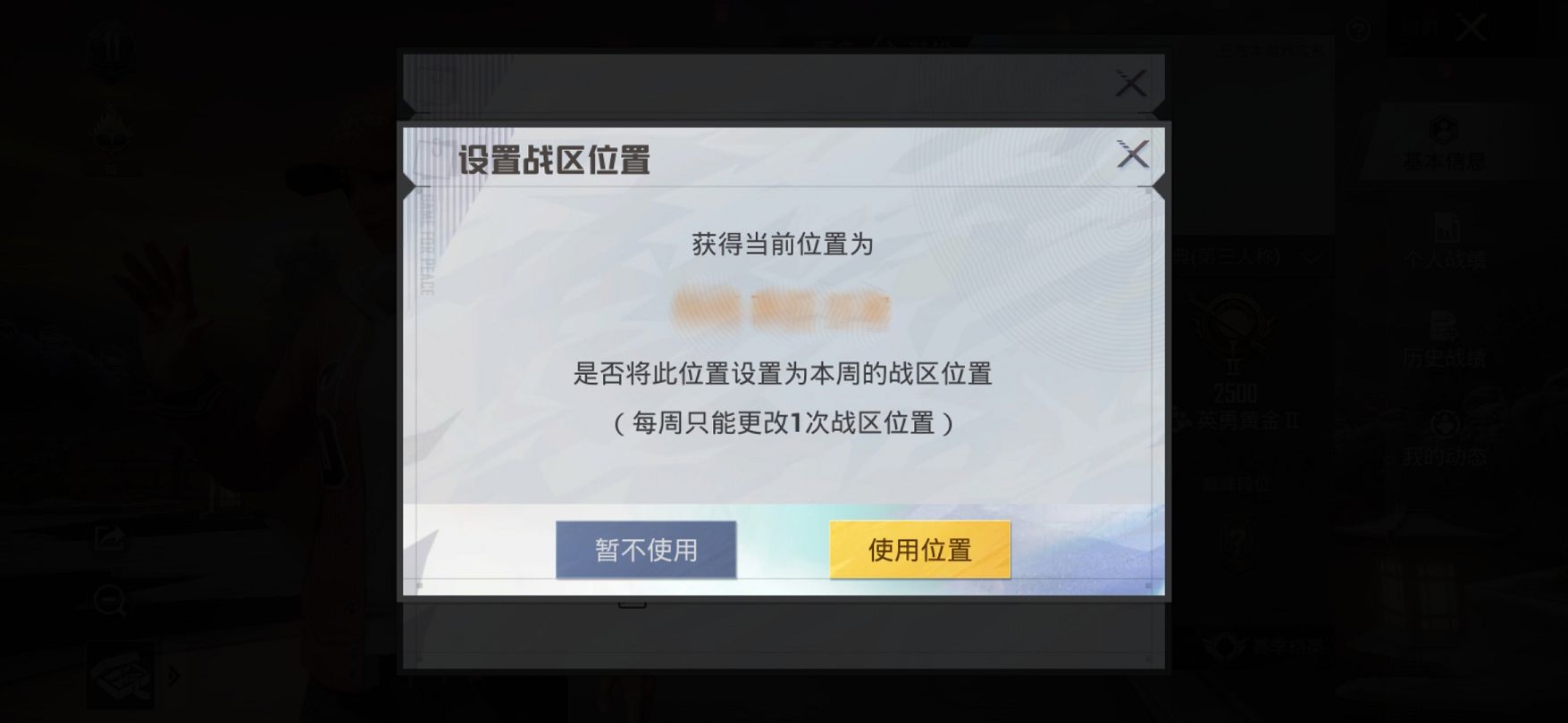 目前在和平精英中战区是通过当前手机的实时定位来选择的,并不能人为选择其他战区。目前只能定位到城市的区域,只有在更换城市或者区域时才会修改成功。如果和此前位置一致的话,则不会修改成功。