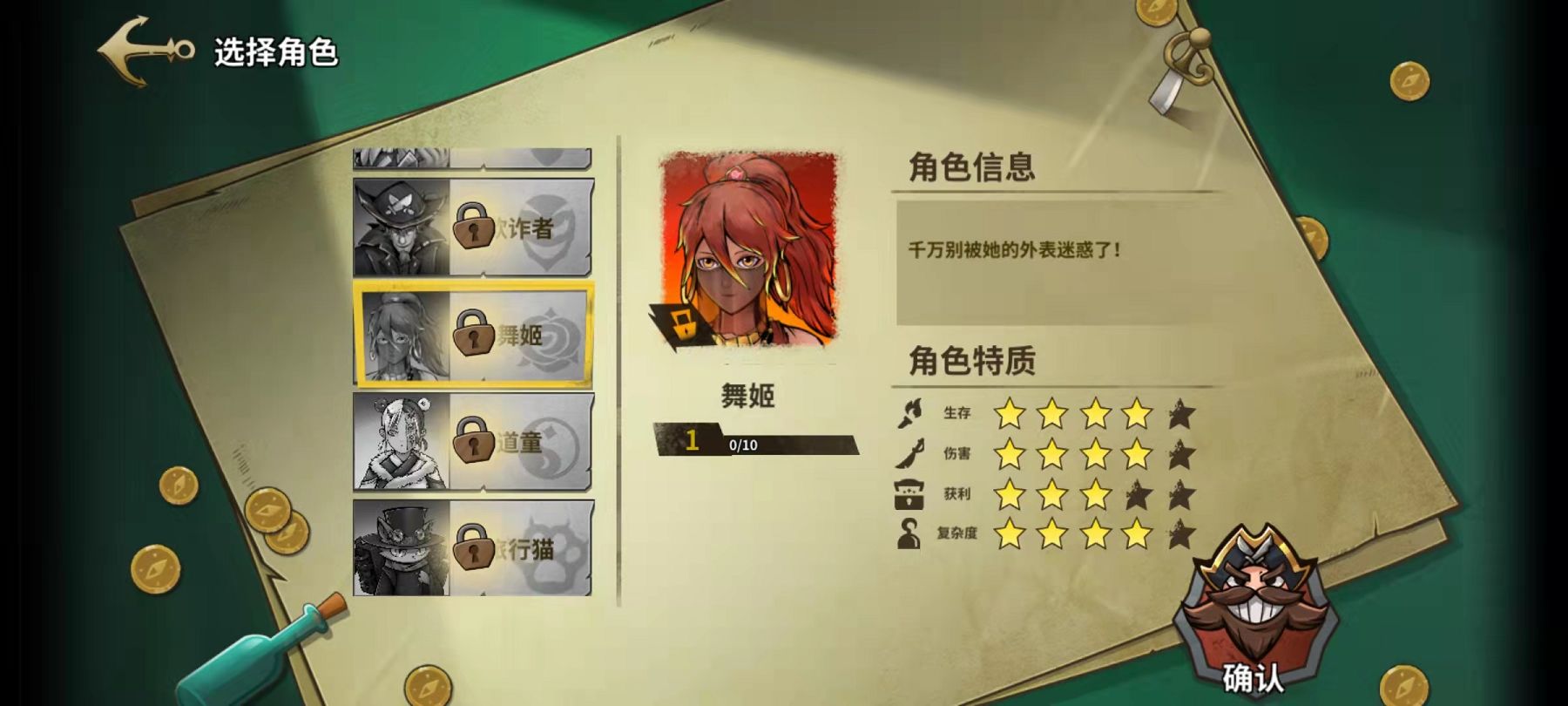 在冒险公社目前已经开放的职业中,大家公认最强最好玩的当是舞姬这个职业。大家从舞姬的角色特质就可以看出,生存能力是4颗星,伤害4颗星,复杂度4颗星,获利是三颗星。从综合能力看,舞姬绝对是当前这些职业中的佼佼者,虽然没有明显的长处,但是也没有短板,发挥非常稳定。在冒险公社的玩法中,因为岛屿牌分为红岛,绿岛和黑岛,所以在玩法上变数很大。而舞姬稳定的风格可以使玩家即使在无法获胜的情况下也能保证好成绩。