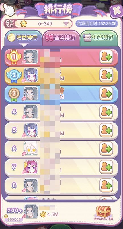 顾名思义,收益排行代表的就是我们在该星评阶段下店铺累计获取的总收益,想要提升收益排行不仅需要我们频繁进行设计的变更以及玩偶的制作、上架,更要多多使用加速以及传单机、促销等功能,简而言之就是多多保持游戏的活跃度。