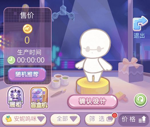 获取图纸之后我们点击下方的菜单,随后点击DIY,在DIY界面我们就可以进行自己的玩偶设计。玩偶设计有三种方法,分别是随机推荐、系列套装以及手动搭配。先来说说随机推荐,所谓的随机推荐其实就是将未使用的设计部件随机搭配在一起,我们能够看到随机推荐中使用的各个部件设计名称以及售价信息。这种方法的好处就是比较无脑,不需要我们一个个找,但是很难获得最大的收益。