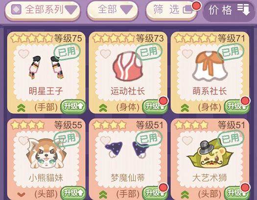 第二种就是系列套装了,目前游戏中拥有包括安妮呜咪、冰狮家族、十二星座等十五个系列套装,凑成系列套装的好处是在拥有幸运王子buff之后如果仓库或者是货架上有对应的套装,那么可以获得大量的额外收益。但是想要凑齐套装还是比较难的,少一个部件都不可以,对于游戏流程前期来说基本上是不可能完成的事情。最为推荐的方法还是手动搭配了,我们在选取图纸的时候按照贩卖价格递减排序,那么排在前列的图纸就能够获取目前阶段的最大收益,这样有利于我们前期的原始资本积累,从而为收集套装打下基础。
