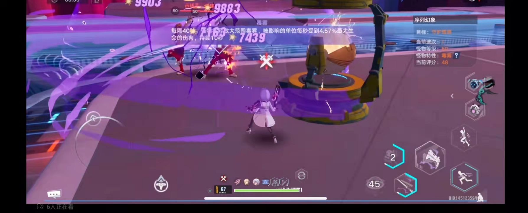 最后一个守护模式,则是需要玩家守护好物品不被怪物袭击,物品生育的生命值和时间越多,玩家获得的分数越高。值得一提的是这个关卡场地的四周有四个设备可奶,四个没打完之前守卫的目标是无敌的,建议玩家带输出和奶,尽可能的拖延时间。这个关卡的怪物会释放毒素,玩家在10秒内会烧到40%多的生命值百分比伤害,所以带奶非常的有必要。