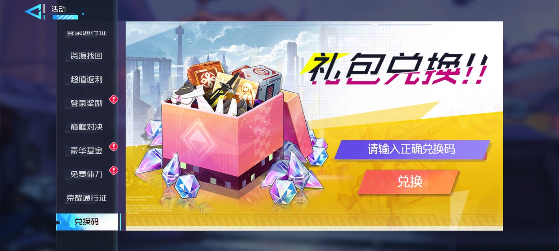 我们点击兑换码就可以打兑换码界面了,然后小伙伴们在右侧直接输入或者说粘贴我们的兑换码然后点击兑换就可以获得丰富的兑换码奖励了!关于游戏的兑换码可以在小编的其他攻略里找到哦!