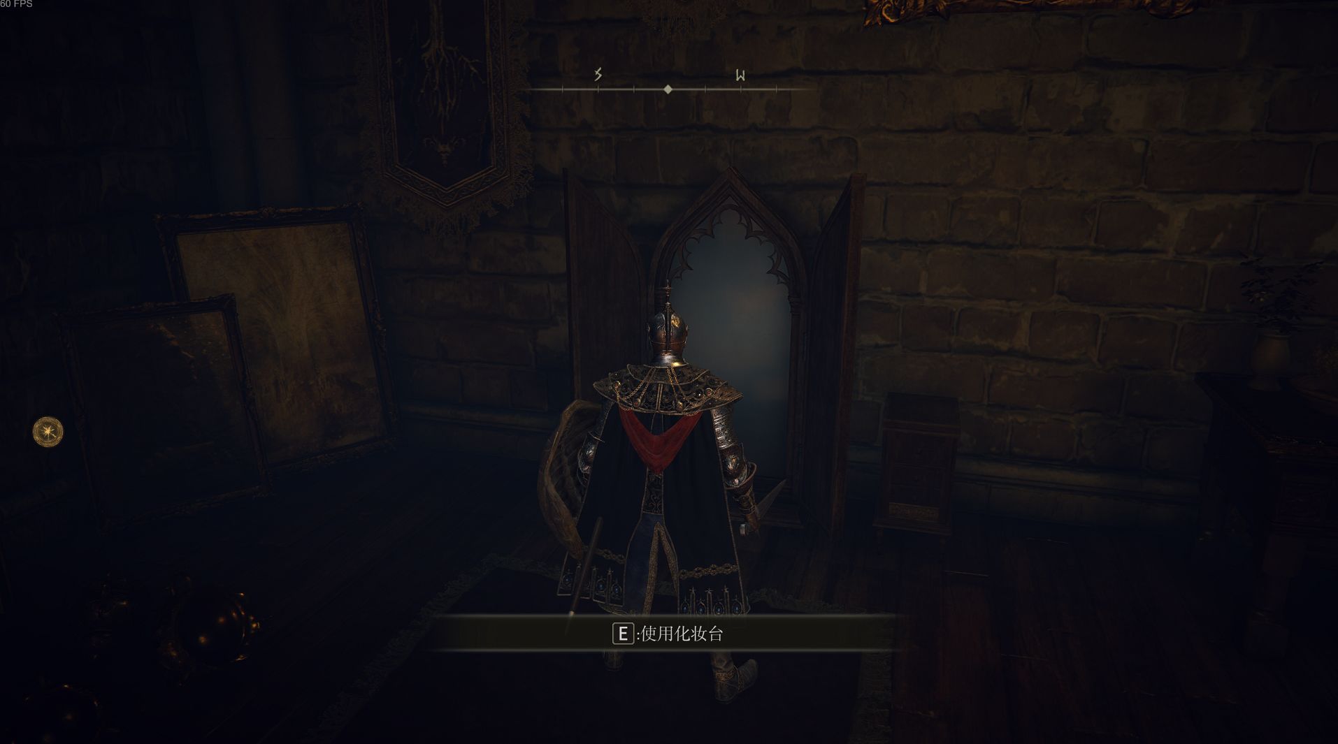 点亮赐福点之后我们跟着指引继续往前走,一直走到隧道里面再点亮一个赐福点就可以开启圆桌殿堂了,玩家们可以通过地图的大赐福来到圆桌殿堂。进入殿堂之后我们可以看到一个生物在那里打造兵器,在它的旁边还有一个房间,我们走到房间的角落就可以看到一面镜子,对着这个镜子按交互按钮就可以重新捏脸了。