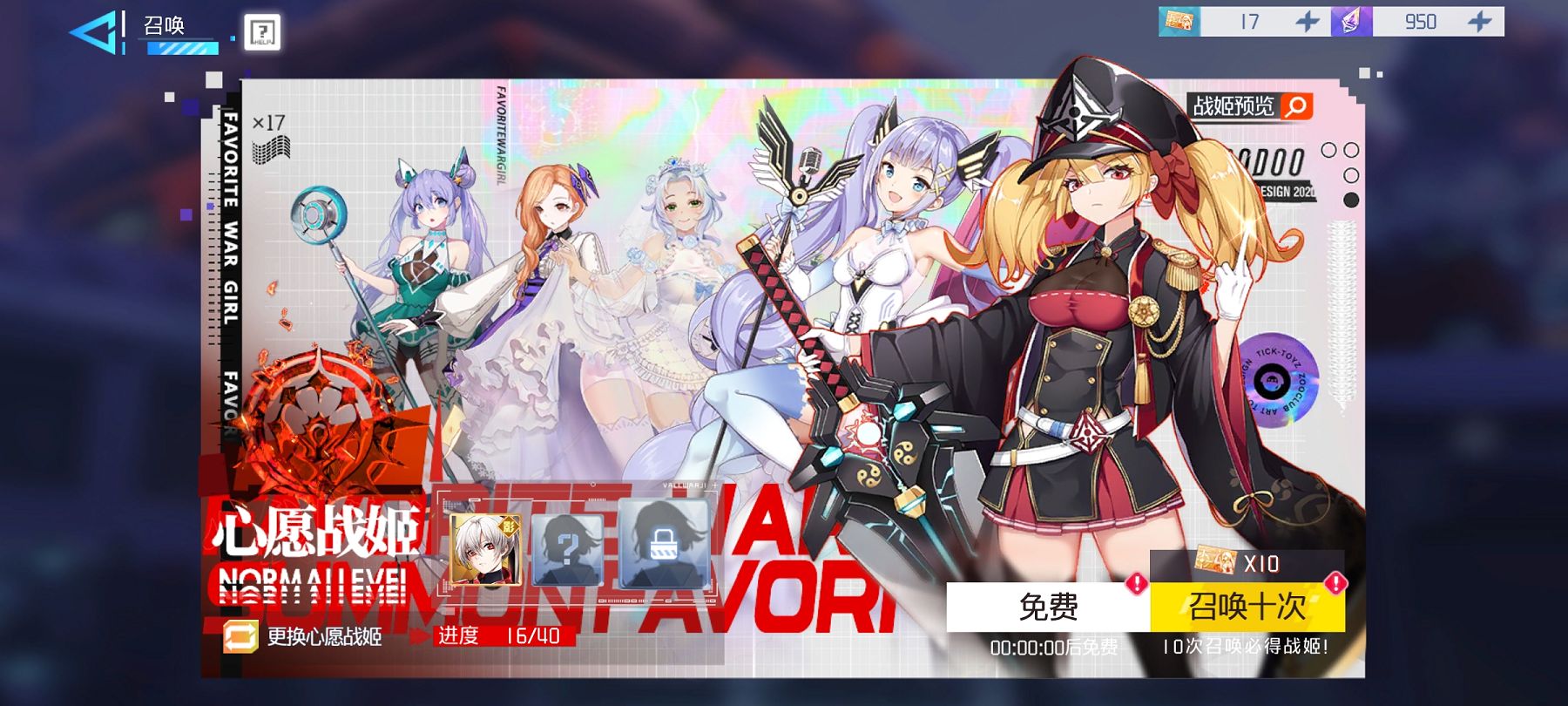 小伙伴们进入游戏之后可以看一下限定召唤给出的战姬是不是自己需要的如果是的话,大佬氪金,平民通过活动积攒召唤券,等待召唤快结束的时候一次清空这样获取几率更高,不过平民一定要记住,不要分开抽卡池,所有的券用在一个卡池中!