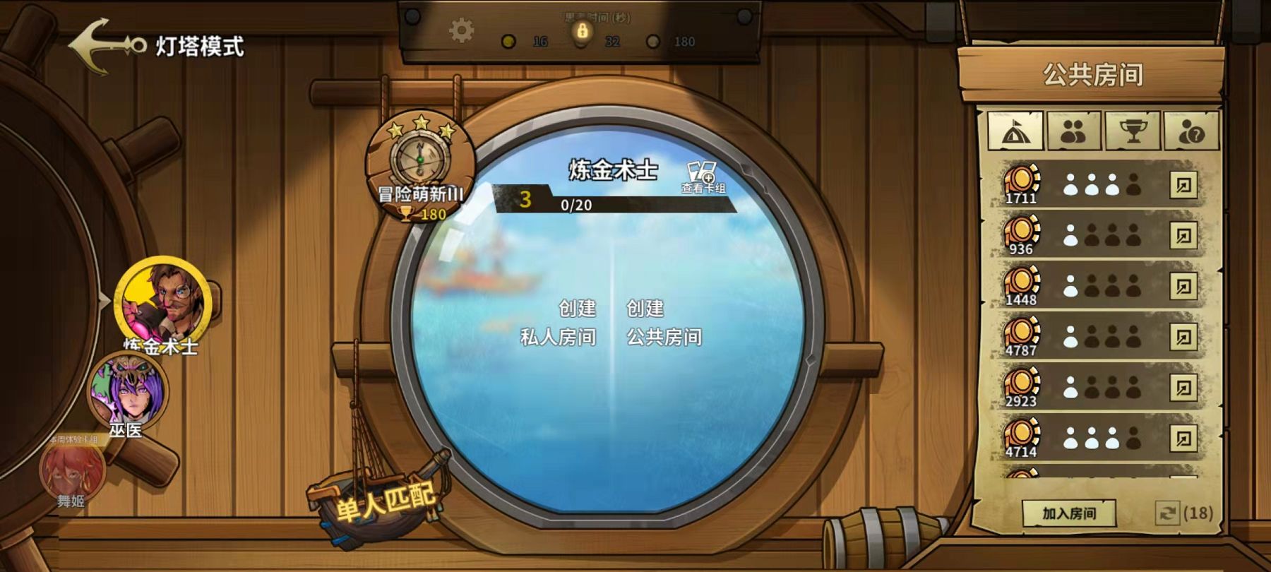 然后需要说一下游戏中的职业,在我们搭配卡牌之前,需要先为自己选择一个合适的职业,目前开放的职业有炼金,巫医,佣兵,欺诈者,舞姬,旅行猫和道童。在游戏中大家就可以看到各个角色的信息。免费提供给大家的是炼金术士和巫医这两个职业,其余的职业想要获得,就需要在解锁角色中花费人民币购买。这也是这个游戏前期需要氪金的地方,解锁了所有角色之后才能更好的体验游戏。