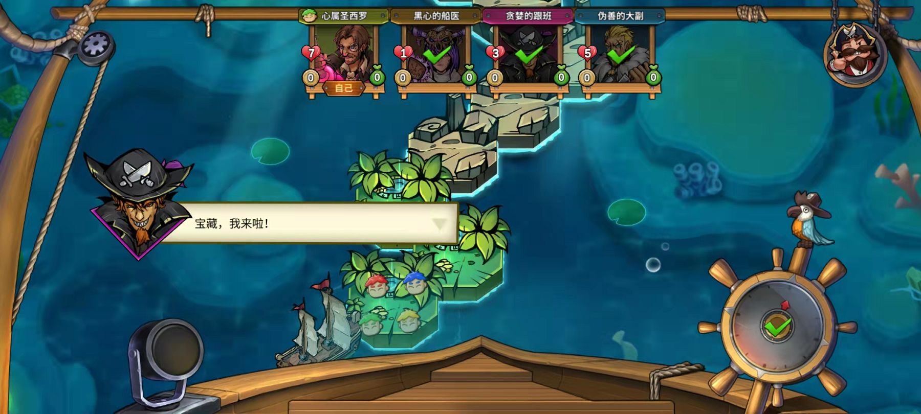再来给大家解释一下比较麻烦的罗盘分析,这是其他桌面游戏所不具备的功能,游戏中的罗盘一共有三种颜色,分别是红色,绿色和白色。如果出现的是红色罗盘,那么说明接下来的三个岛屿中出现红色的几率是大于绿色的,如果是绿罗盘,同样这是绿色大于红色,如果是白罗盘那么出现黑色的数量多。导语的判断并不能完全凭借楼盘,因为很多手牌可以对岛屿进行推拉,所以还需要实战中视具体情况而定。
