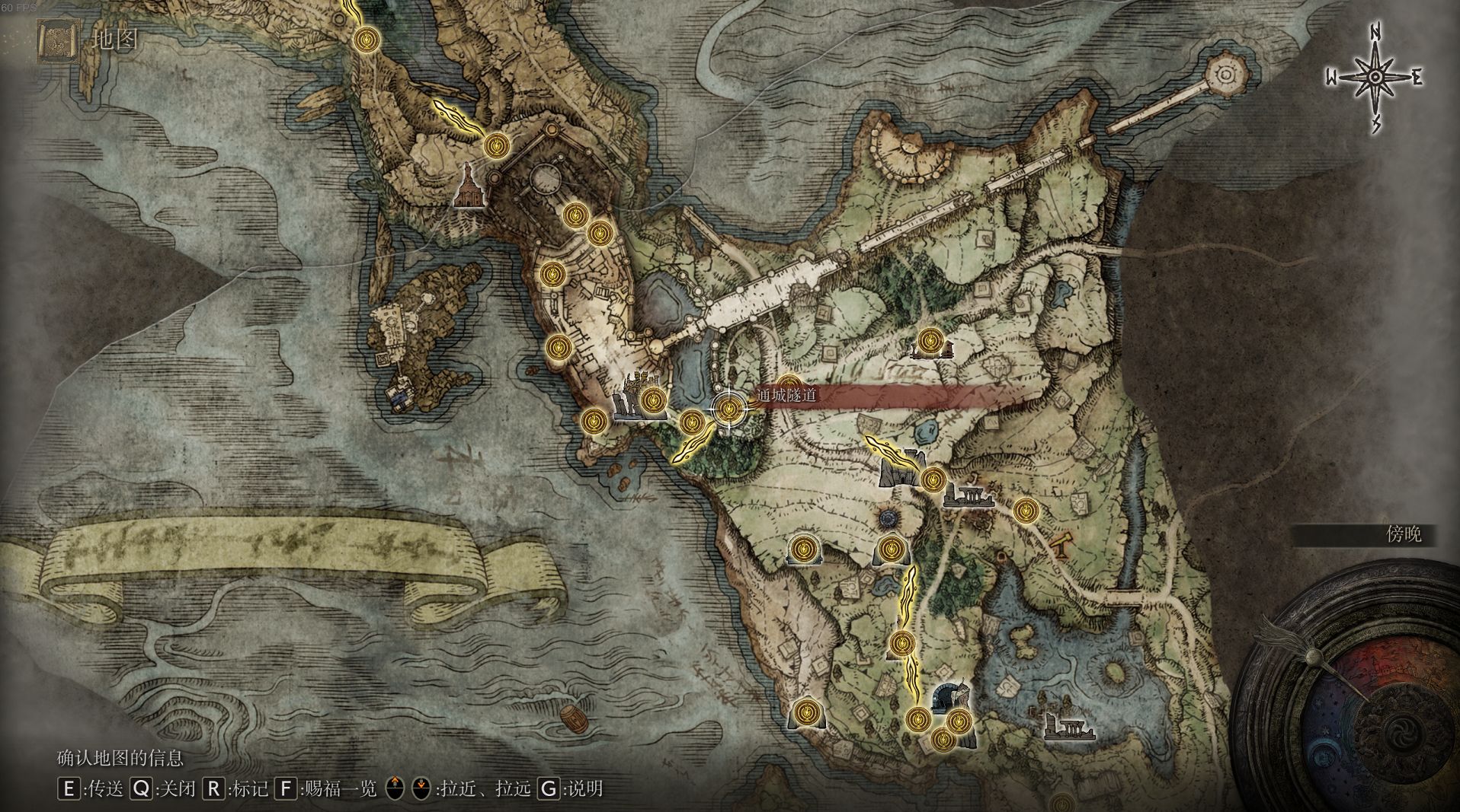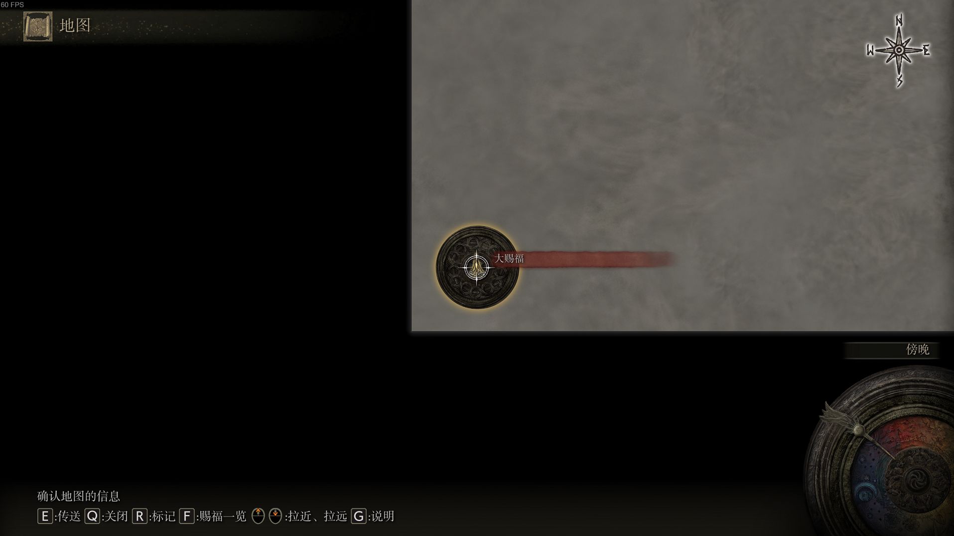 如果退出大赐福之后还想进入的话可以按G打开地图,地图的左下角就是大赐福了,将光标放到大赐福上面再按E就可以传送了。大赐福也就是我们所说的圆桌殿堂,在这里我们还可以遇到一个红灵,将它杀死之后有可能获得一把镰刀,这个武器在前期还是很好用的,所以小伙伴们赶快行动起来吧。