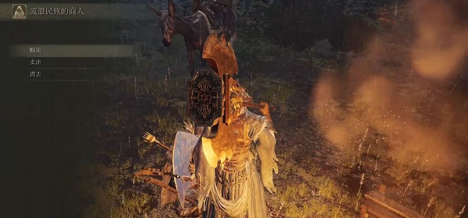 摩恩城具体位置就在整个地图的六点钟方向,玩家们在路途上可能会遇到一个黑骑士怪物,击败之后可以获得一个黑夜骑兵连枷,然后找到那个商人花费60卢恩就能购买到这把飞刀了。
