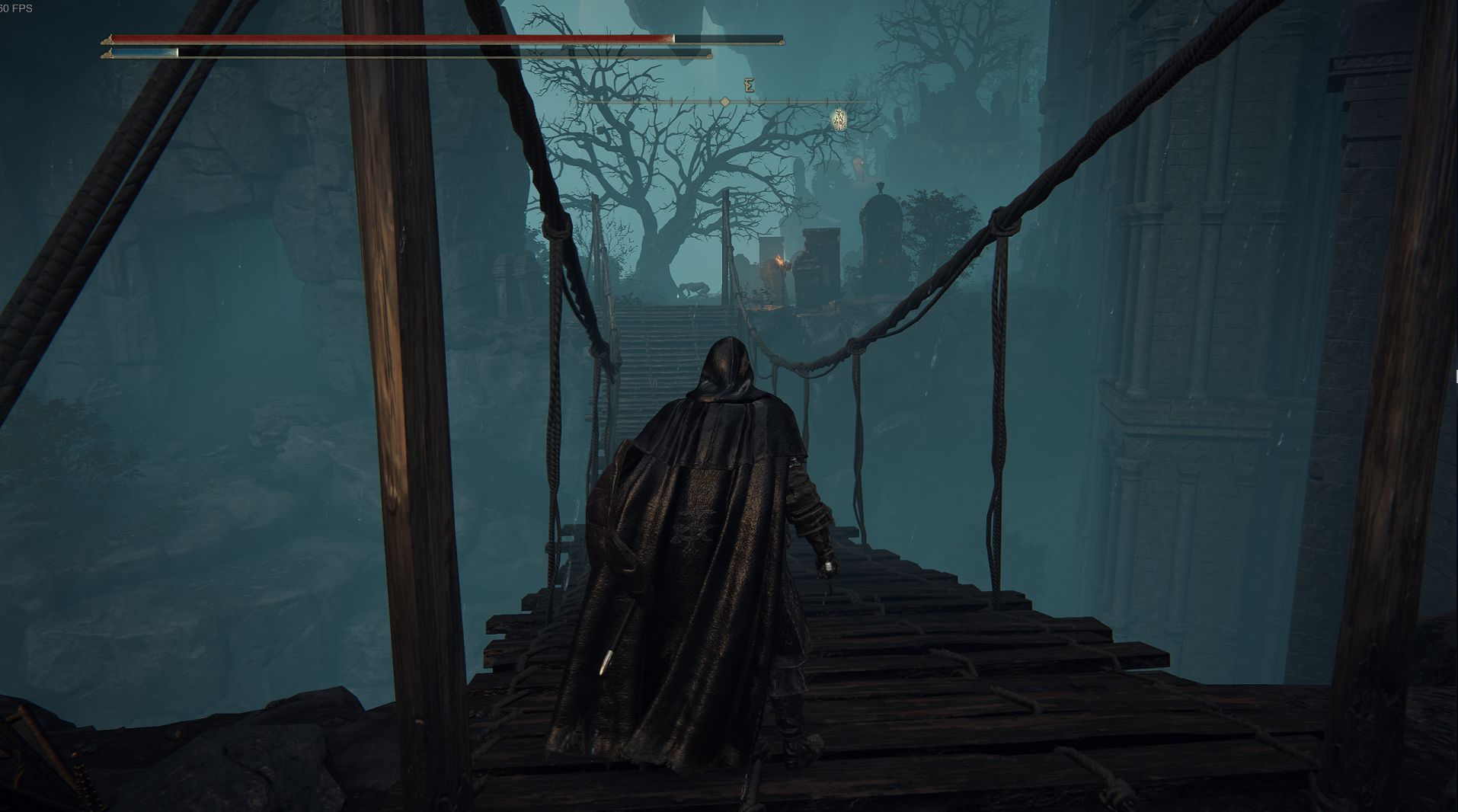 我们到了这里之后直接跳下去,这里比较低所以跳下去并不会有任何伤害,我们把悬崖下面的几个骷髅打死之后就可以捡起石碑前面的卡利亚辉骑士套装了,是不是非常简单呢?整个流程没有任何boss,我们只需要一直跑不被小怪追到就可以了,看懂的小伙伴们赶快打开游戏实际操作一下吧。