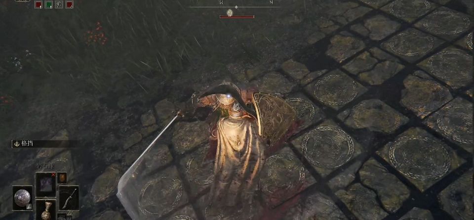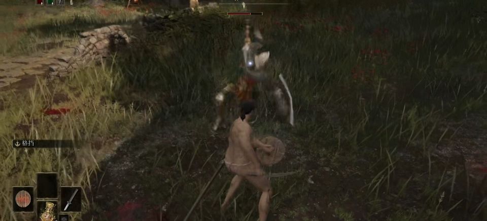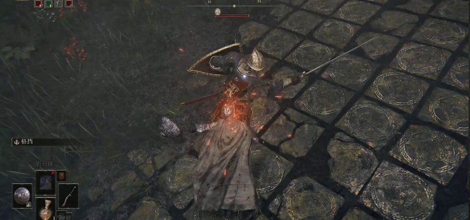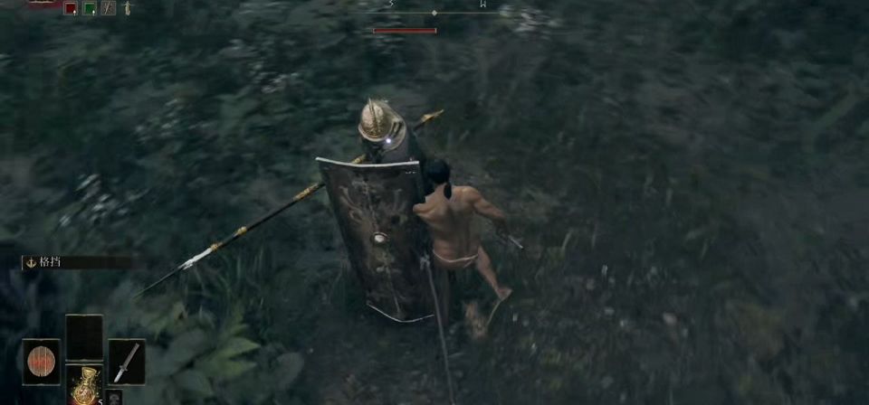 想要触发弹反操作的话,必须左手持盾,右手持剑,当我们按下鼠标右键的时候就可以将盾举起来,接下来按一下shift它是有一个可以弹反打开敌人攻击的动作,如果这个动作正好接到敌人攻击的那一瞬间,就算触发了一个完美的弹反操作。大家在初始练习的时候可以来到关卡前方找小兵练习,这边是以一直按下shift键,等到敌方攻击的时候,按下鼠标右键。