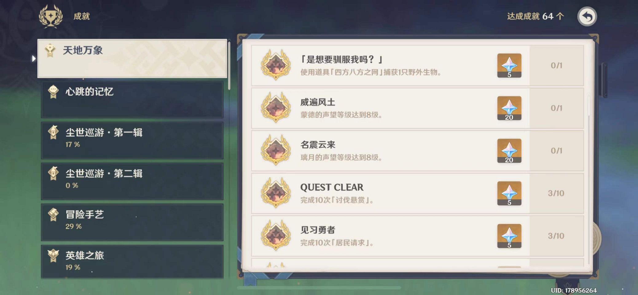 在蒙德地图里面能完成的成就有天地万象、蒙德风与牧歌的城邦,主要完成方式就是提升自己在蒙德的声望等级,并提升自己手艺的熟练度。并挑战各种地图的领主以及深渊等任务,还需要完成各种支线任务、主线任务,完成后可以领取大量的原石。