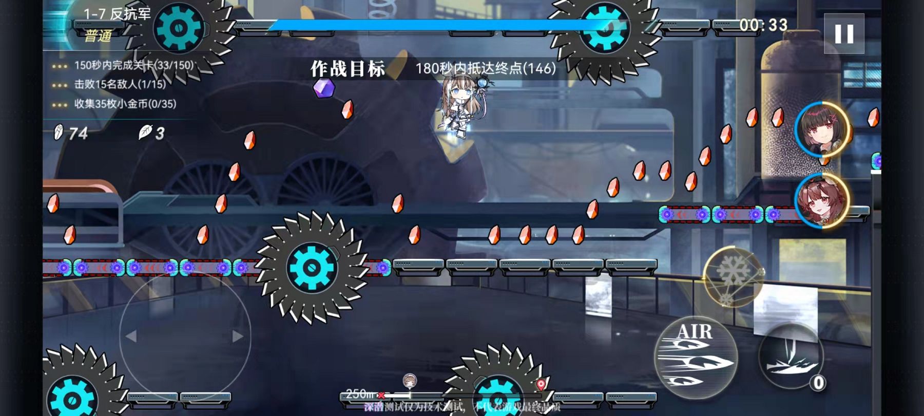 神行少女的主要玩法是将跑酷,横版格斗卡牌养成组合在一起,其中最好玩的地方就是在自己的跑酷和格斗的融合上。在神行少女的战斗中,我们不仅需要面对各种小怪,而且在前进的道路上还会出现很多物资奖励,我们需要在击败小怪的基础上,通过跳跃走位等尽量多的获得这些物资。和大部分跑酷游戏一样,在战斗中系统会强制玩家向前方行走,很多时候无法后退,这就给战斗带来一些难度。所以现在大家普遍反映神行少女中的关卡难度过高,相信在接下来的测试中会解决这个问题。