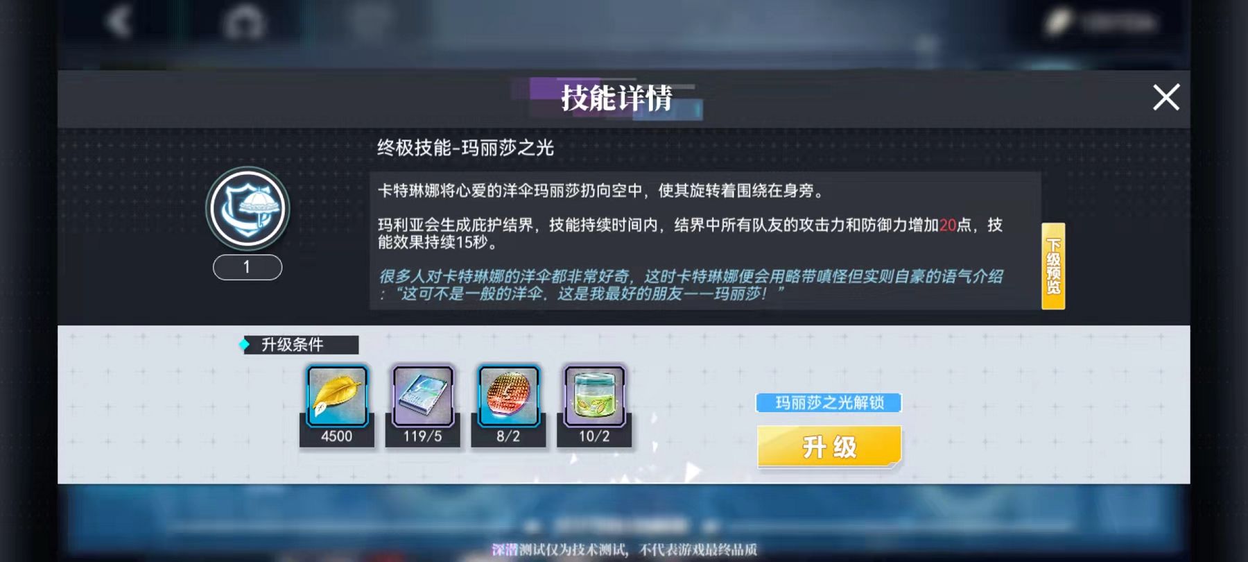 这个技能在所有的SSR级别女武神中,属于非常强力的辅助技能,能够显著增加队友的状态,一般在面对敌人比较密集的时候,或者是打boss需要硬扛技能的时候,可以很好很好的保护团队。除了这些主动技能之外,卡特琳娜还有一个角色的特性就是天生优势,当长按攻击键进入蓄力技能的时候,卡特琳娜的生命流失速度会降低15%。生命流失是神行少女中地图上一些独特的环境引起的血量降低现象,生命流失不是一般的攻击,所以不会受到防御减伤等效果的影响。现在很多玩家都不太适应这个生命流失效果,很多血量都是因为在这里损失的。而使用卡特琳娜就能够有效的降低在这些环境中的掉血现象。