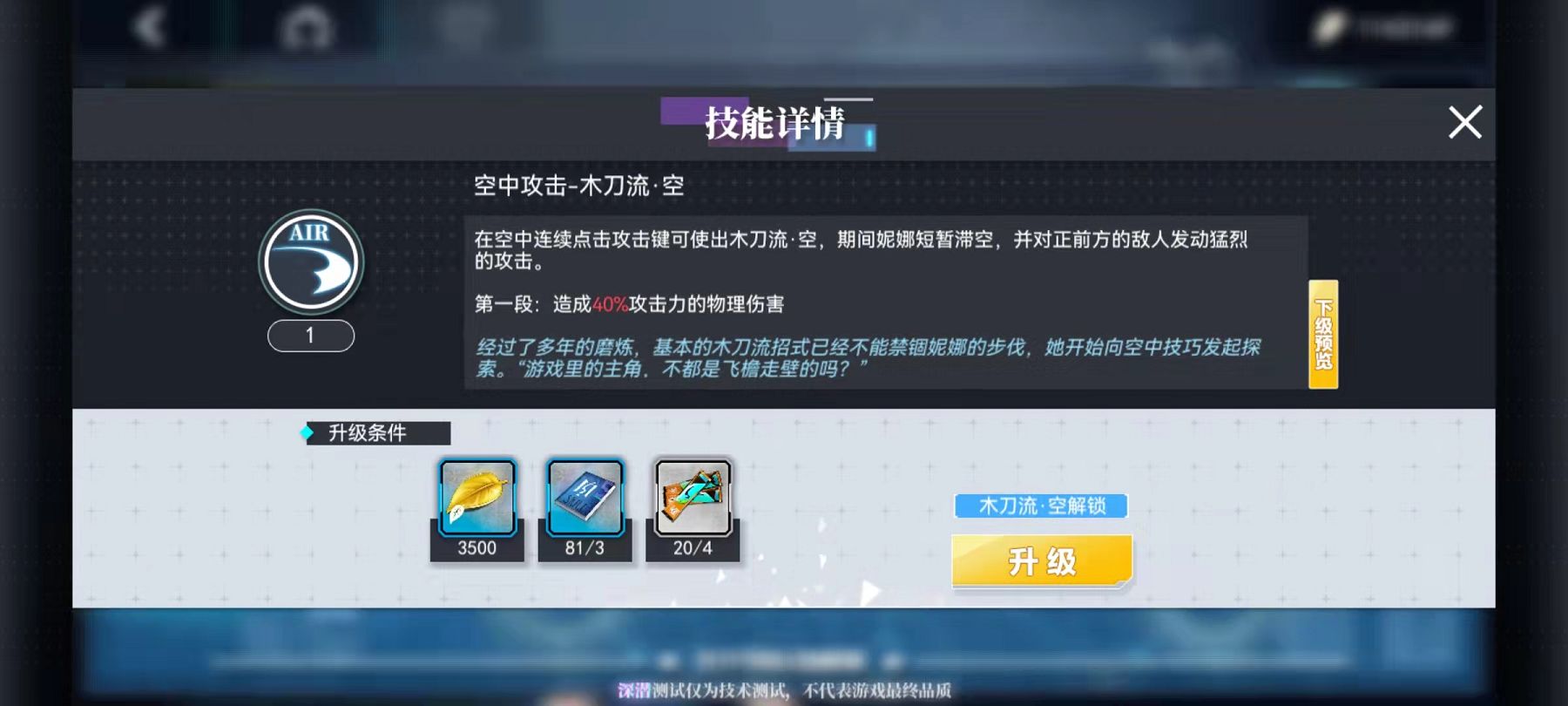 当跳在空中之后就可以使用另外一个空中攻击技能了,在空中只需要连续点击攻击键就可以触发空中技能。但是一定要注意,只有自身在处于跳跃状态,在空中悬浮的时候才能够使用空中攻击技能,所以空中技能的使用是最有难度的,必须把握住滞空的时间,才能够使用空中技能打出良好的输出,这也是判断一名玩家操作是否到位的依据。终极技能的释放反倒简单,只要在技能的冷却时间内,判断能够使用终极技能带来最佳的收益就可以释放。很多玩家都喜欢把终极技能留在打boss时使用,其实在小怪阶段也是可以的,使用终极技能可以有效增加我们的评分。