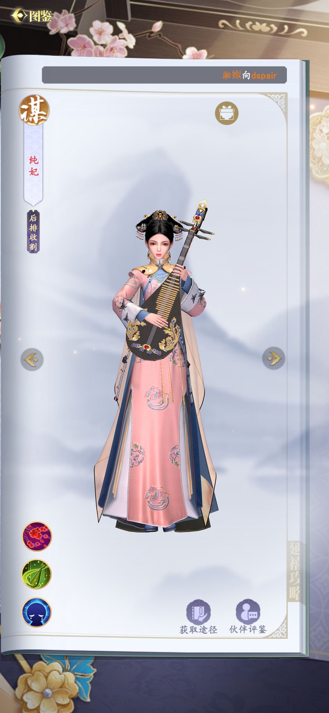 接下来就是娴妃,作为除了富察皇后之外唯一一个可以为队友增加伤害、攻击力、血量和免伤的角色,娴妃是队伍中的唯一回复来源,一般来说将它放在队伍后排的左侧或者是右侧位置。每次娴妃行动完成之后,都可以为血量最低的队友回复百分比的生命,这也是这套阵容强势的关键所在。