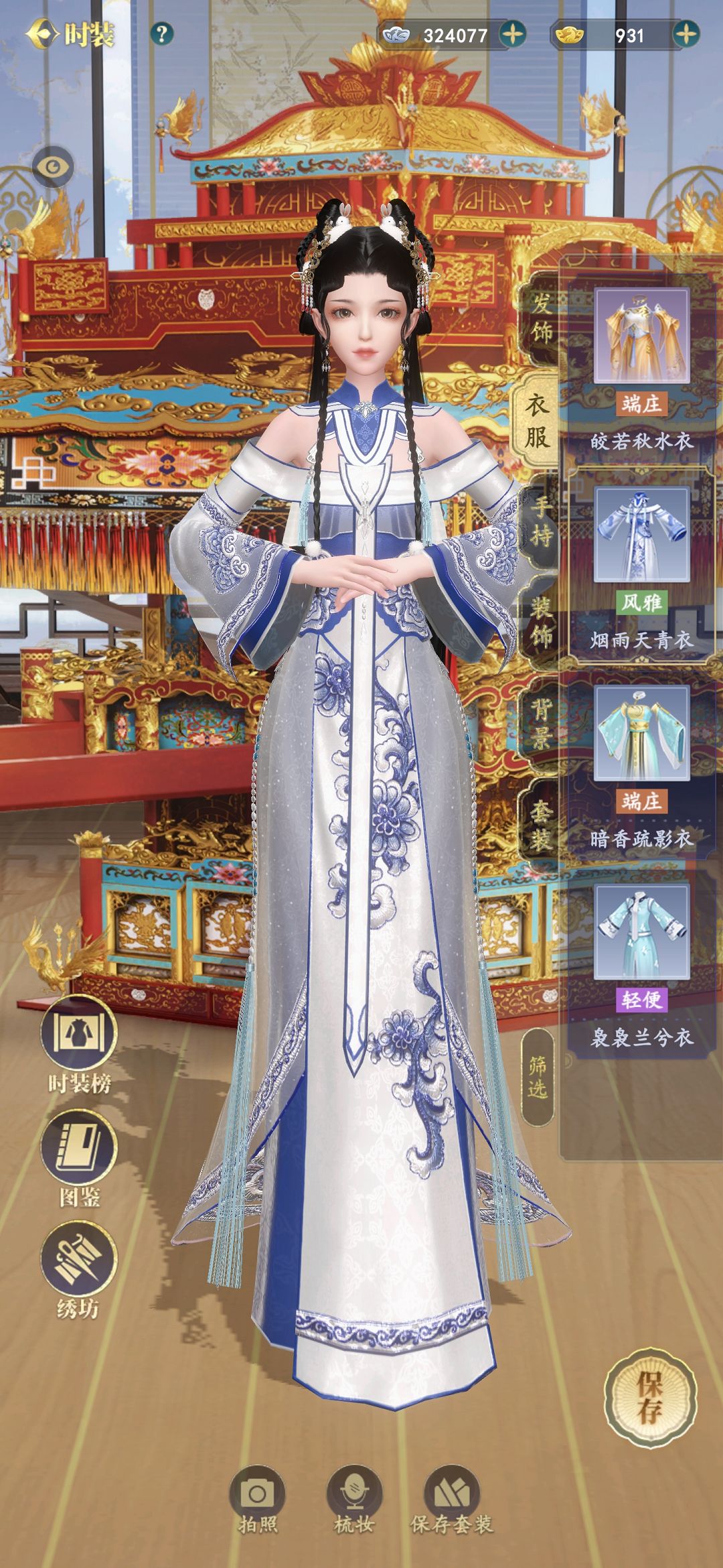 由于延禧攻略之凤凰于飞只能使用QQ或者是微信登录,对于这两个服务器的玩家分别有着两套不同的时装奖励,对于QQ区里面的玩家服装就是偏向于风雅的这样的烟雨天青衣,这套服装有一种青花瓷的感觉。