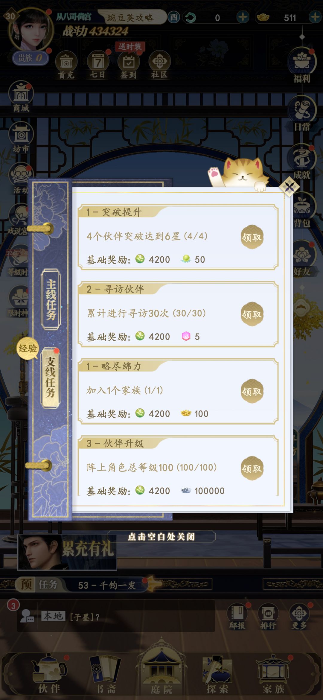 以上就是关于延禧攻略之凤凰于飞怎么升级快的所有内容了,在32级之前就老老实实的跟着剧情做任务,后期解锁了名臣宴会和家族玩法之后提升经验的方法就更多了。