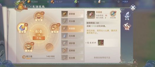 第一个要向大家推荐的就是制作生活技能中的烹饪和制香。烹饪和制香其实效果是差不多,通过烹饪和制香我们能够获得料理和香物,这两个产品都能够给我们带来生命值回复的效果,料理是持续性回复效果,而香物则是瞬间的血量回复。