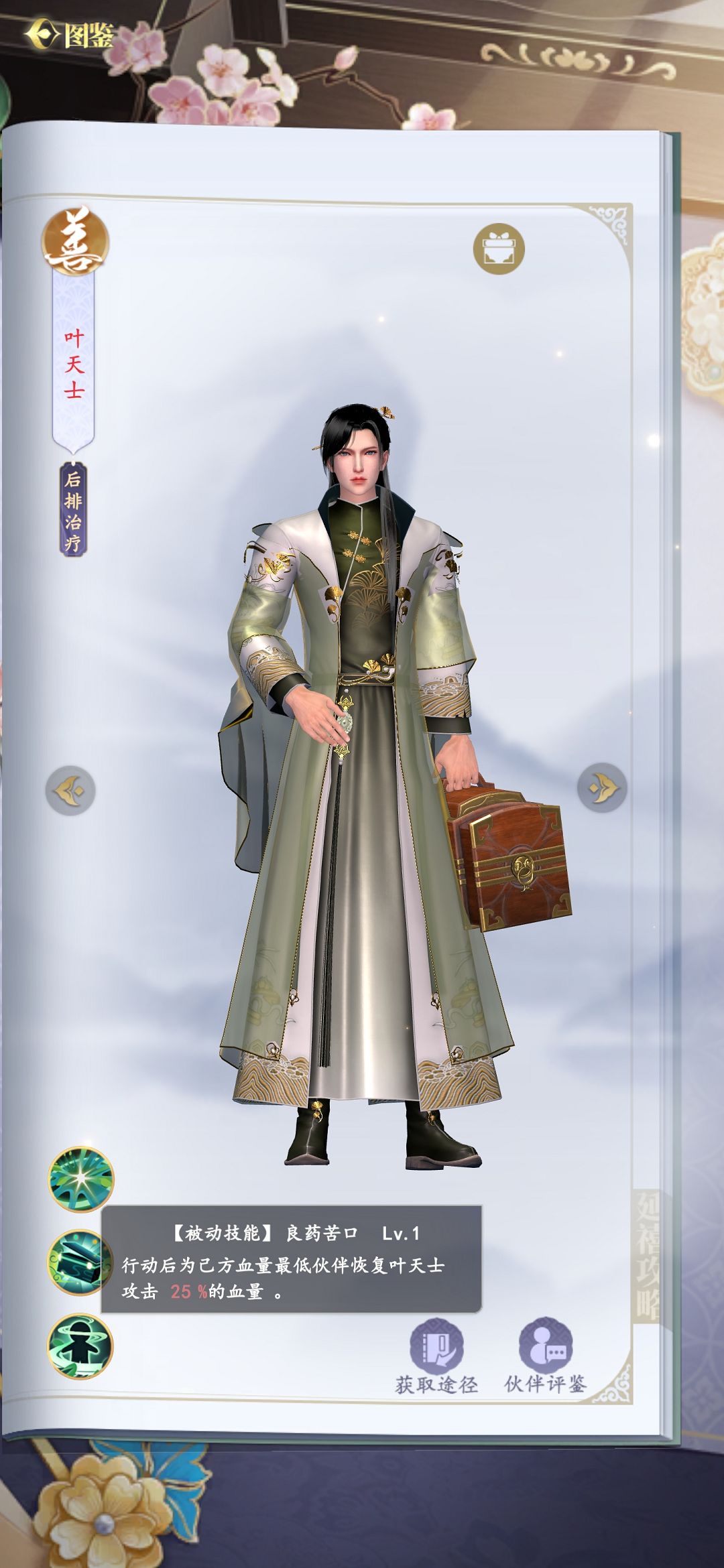 叶天士是游戏中的一个暖男治疗辅助,他可以为全体队友回复奶量,而且还会驱除身上的减益效果,这也是这个游戏里面唯一一个可以为队友解除控制、在自己血量变低的时候控住全场一个回合的角色,他所带来的控制能力是其他贵人角色所比不上的。
