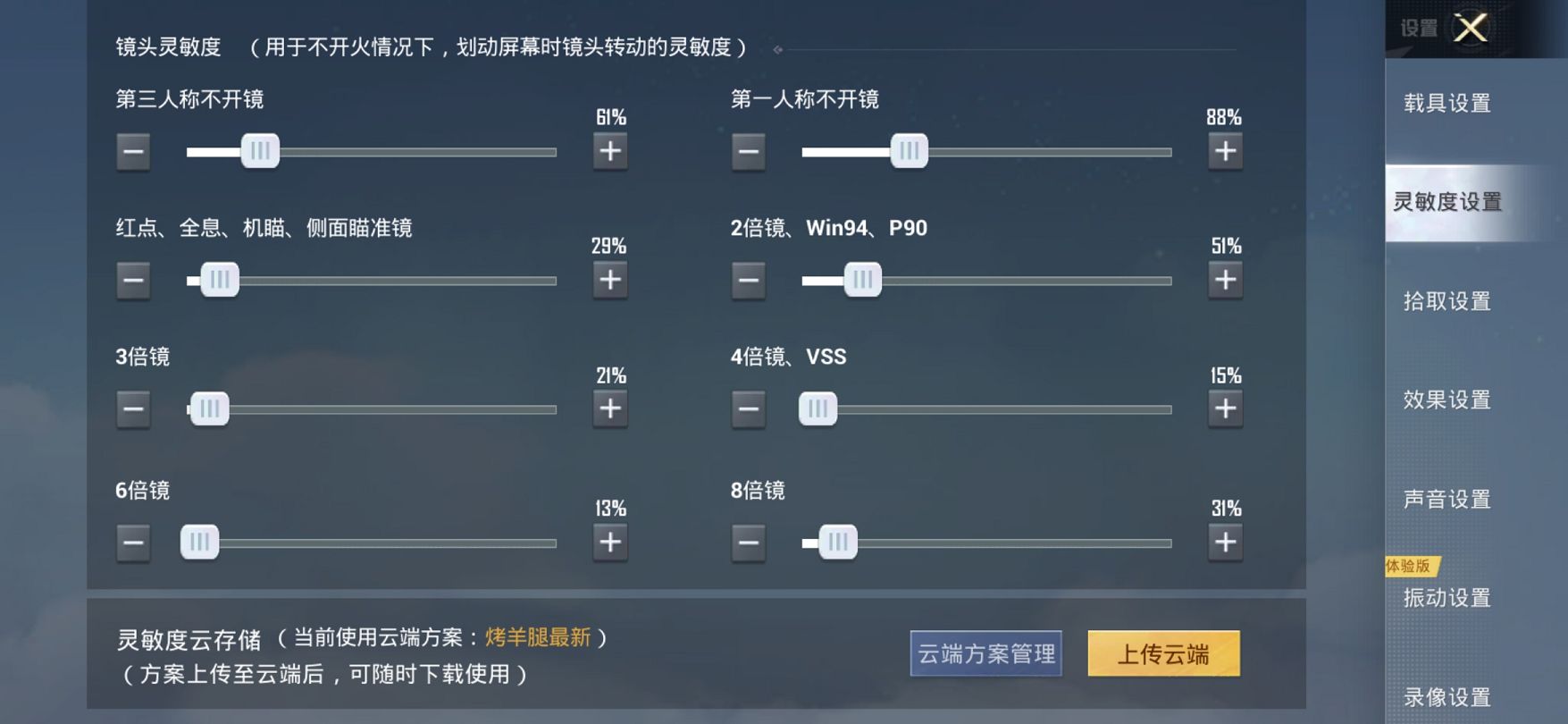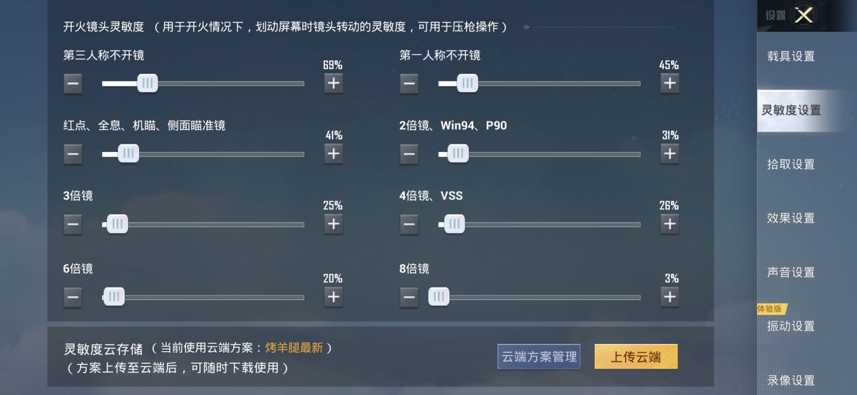 目前游戏中灵敏度有三种:自由镜头灵敏度、镜头灵敏度和开火灵敏度。这三种之间可以说是互不干扰的。如开镜的时候,是镜头灵敏度控制的,和其他两种灵敏度的设置没啥关系。按理来说,压枪稳不稳主要和开火灵敏度和手的下拉控制有关系。