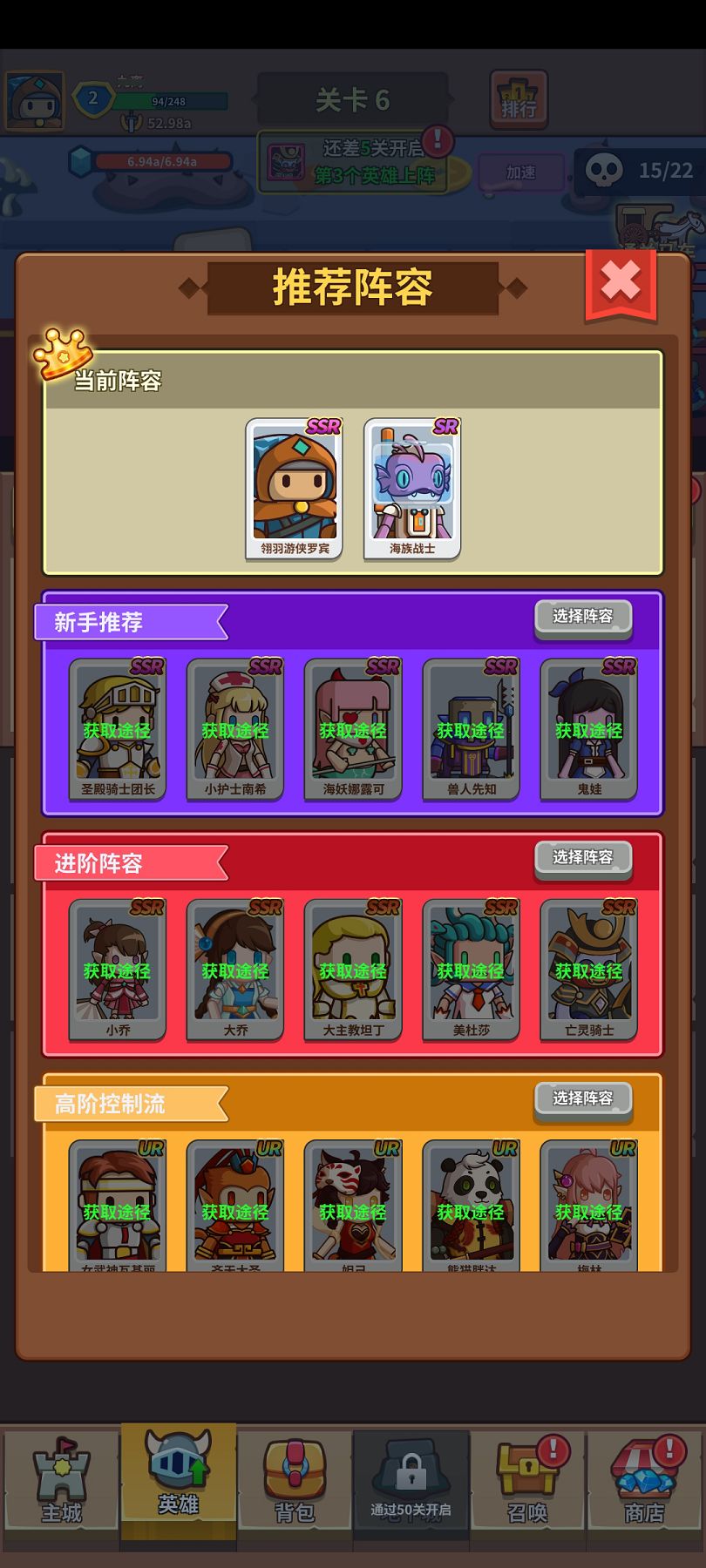 首先这款游戏的前期是很友好的基本上小伙伴们运气好的话可以获得一个UR加四五个SSR级别的人物,虽然不是什么非常厉害的人物但在前期也足够打了。在我们前期的时候是没有过多的位置可以放人物的,小伙伴们将第十关打通之后就可以获得三个空位,这样可以很好的解决前期的攻击力不够的问题,所以优先考虑通关。