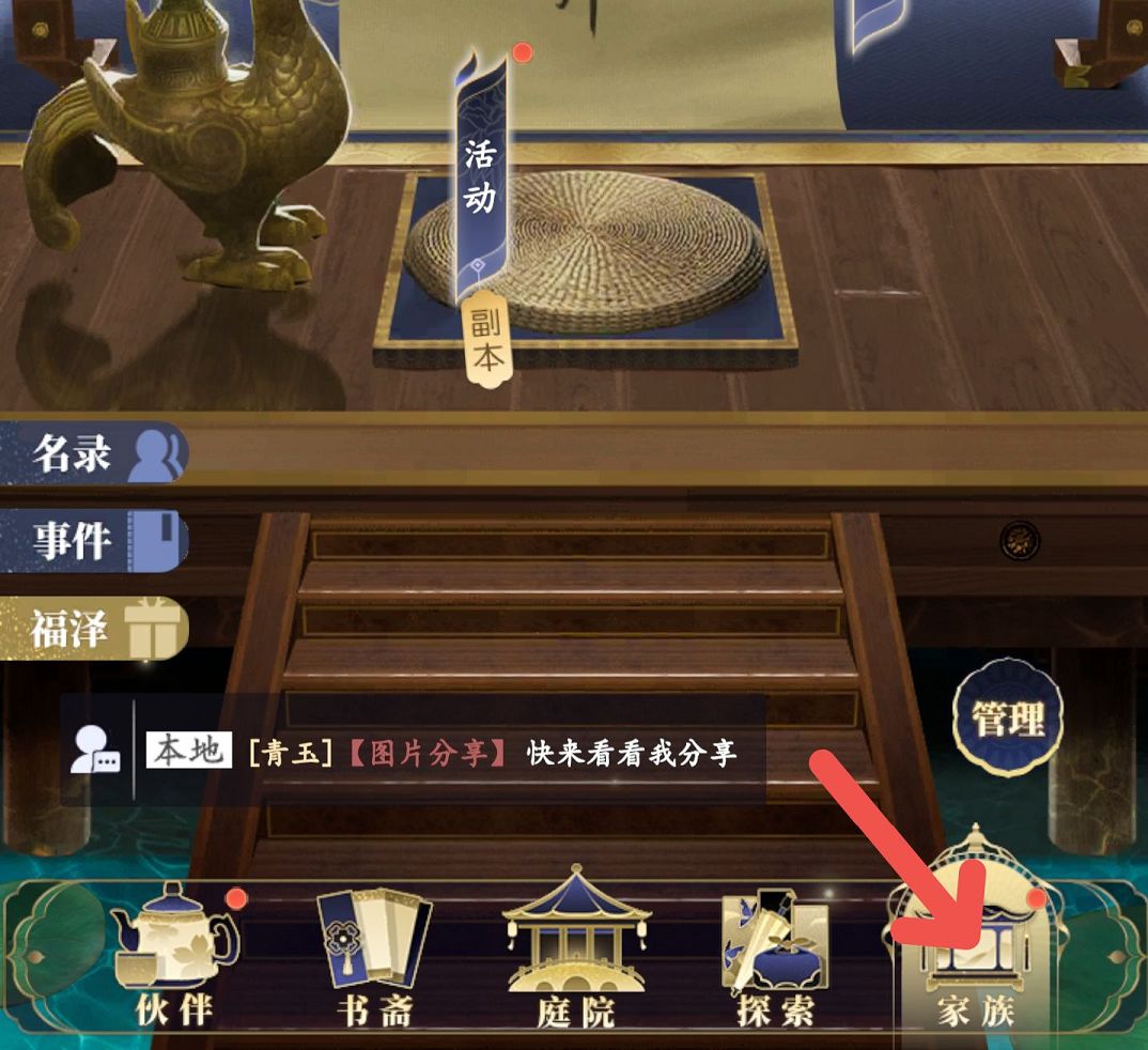 1、进入延禧攻略之凤凰于飞游戏主界面之后点击右下角的家族,这里要注意必须将等级提升到25级才可解锁家族玩法。