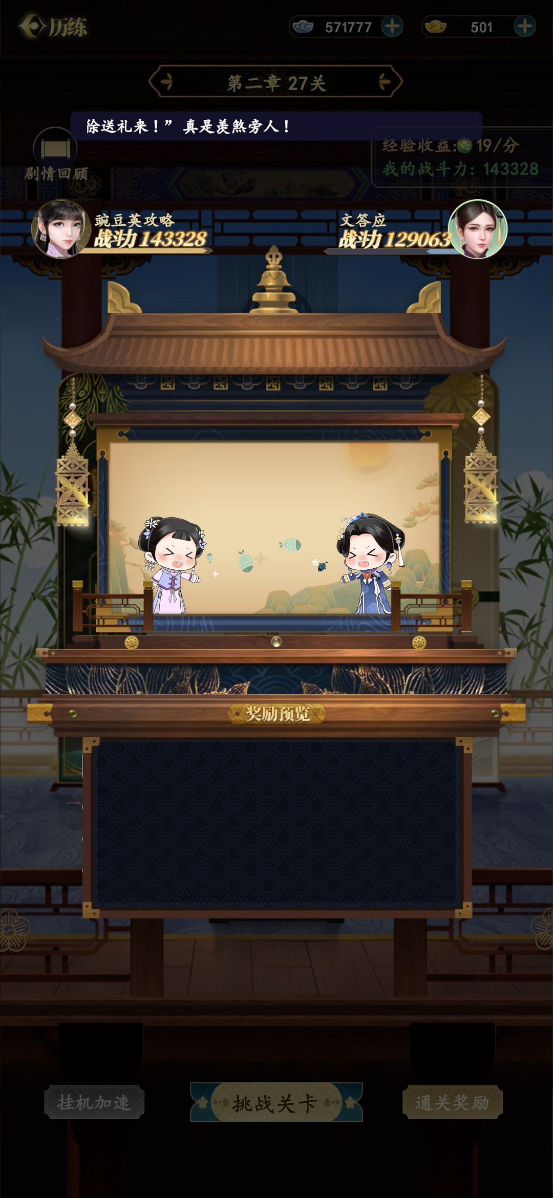 延禧攻略之凤凰于飞本身就是以剧情为主的一款游戏,不过有很多玩家喜欢这款游戏的时装,但前期仍然有无穷无尽的剧情,需要点来点去,前期的战斗也不需要考虑战力问题,必须达到相应的等级才能上阵够五个伙伴,有很多玩家没有这个耐心,大家也可以在相关平台上或者是世界里面喊话接单。
