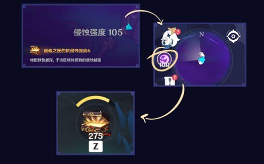 在黑雾弥漫的情况下通过使用睦疏之匣不仅可以消散一部分的黑雾而且还能够对附近的敌人造成一定伤害。渊下宫区域内有好几块被黑雾侵蚀的区域,颜色越深区域收到的侵蚀也就越严重,而伴随睦疏之匣的等级提升,我们也就能够减弱甚至是消散区域内的黑雾。