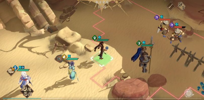 1、此时的站位只有冰璃一个可以攻击到人,在等璇玑和冰璃找到位置后,给一个被打回血的被动技能。