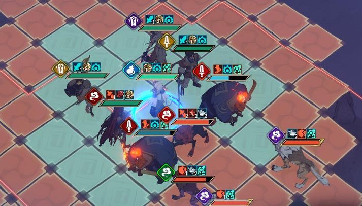 2、在第二个回合的时候,小狐狸继续周围吸引到小怪后往左边跑,其他角色则是向下去。小公主给蜘蛛回血,用蜘蛛继续吸引BOSS走到下边去。