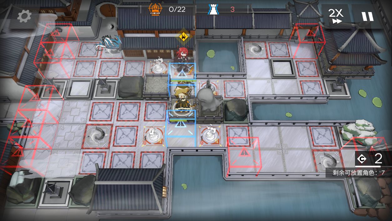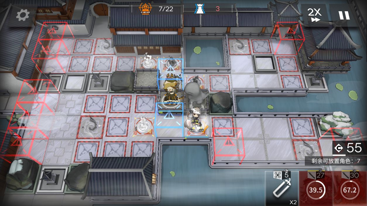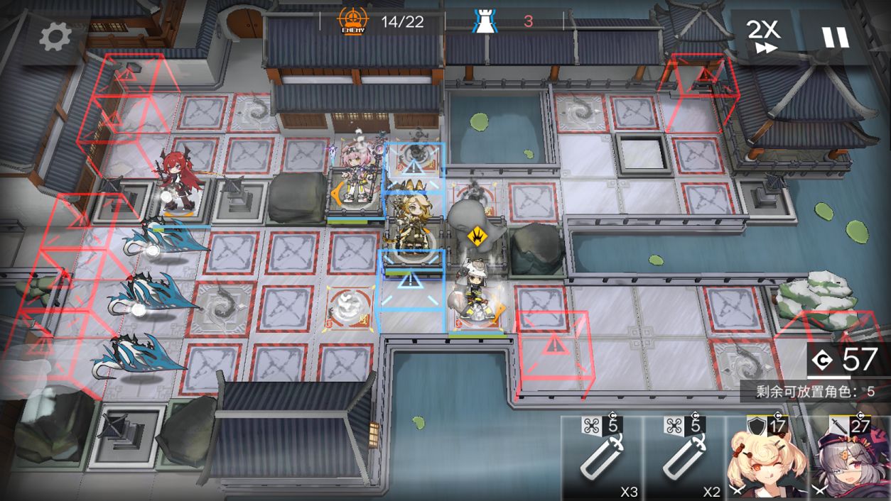 开局先部署夏栎还有42姐,42姐冲右侧攻击,开局不要开技能,先把敌人单切了。然后部署泡普卡堵门口,第一波敌人清理掉之后,让42姐开技能把剩下的敌人处理掉。注意这里秒了敌人42姐马上撤掉,慢一步就跟不上回转了,这点非常的关键。