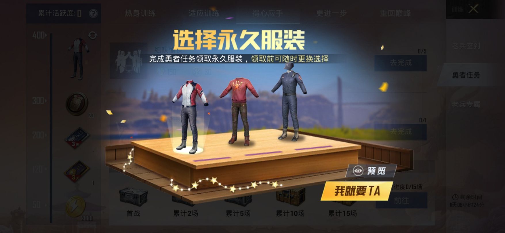 老兵回归时会有勇者任务,完成后就可以在三个套装中免费领取一套,目前有骑行爱好者、怒火燎原和蓝色守护者三套可以选择。这三套都是经典时装套装之一,也是非常值得白嫖的时装。