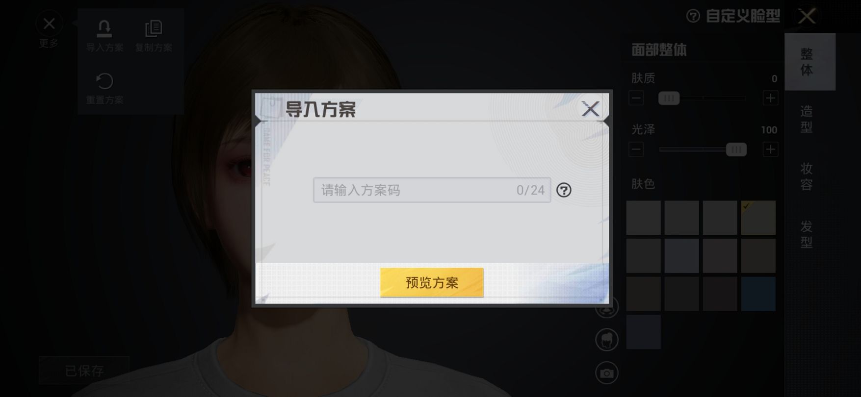 2、选择更多功能的导入方案即可把想要的脸型代码复制进入,点击确定就好啦。