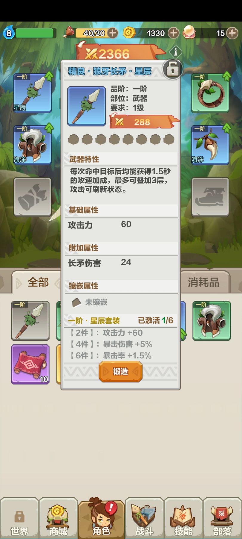 那么在选择武器上,新手期我们有什么武器就上什么武器,不管是弓箭、矛、法杖还是回旋镖,哪个武器的品质和伤害高就用哪个武器,这样可以帮助我们快速推图!