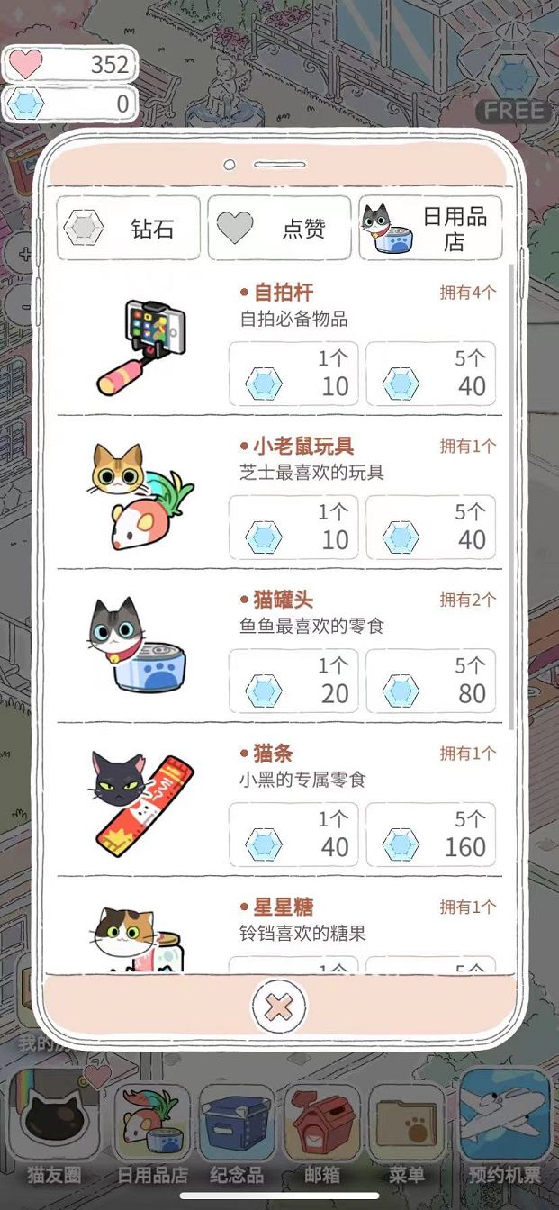 第一种方法就是在旅行的过程中认识更多的伙伴,不过这里也需要用到一个小道具,那就是日用品,游戏内有很多日用品存在,不同的日用品所对应的猫咪都是不一样的,玩家只有在旅行的过程中携带这个日用品,并且使用它就能与对应的猫咪进行合照,合照完成之后,这个猫咪就会成为玩家的粉丝,并且出现在任务栏里,玩家可以与其进行后续的沟通,日用品可以通过做任务获取,也可通过使用钻石购买。
