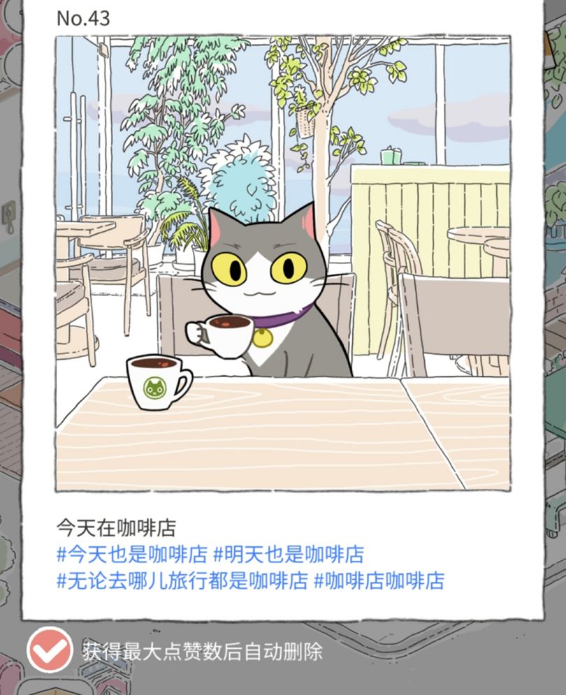 好啦,以上内容就是猫友圈猫咪的旅行里怎么删除帖子的详细介绍了,简单来说,玩家只要在照片下选择达到最大点赞数即可自动删除,也可以在帖子详情中选择手动删除。