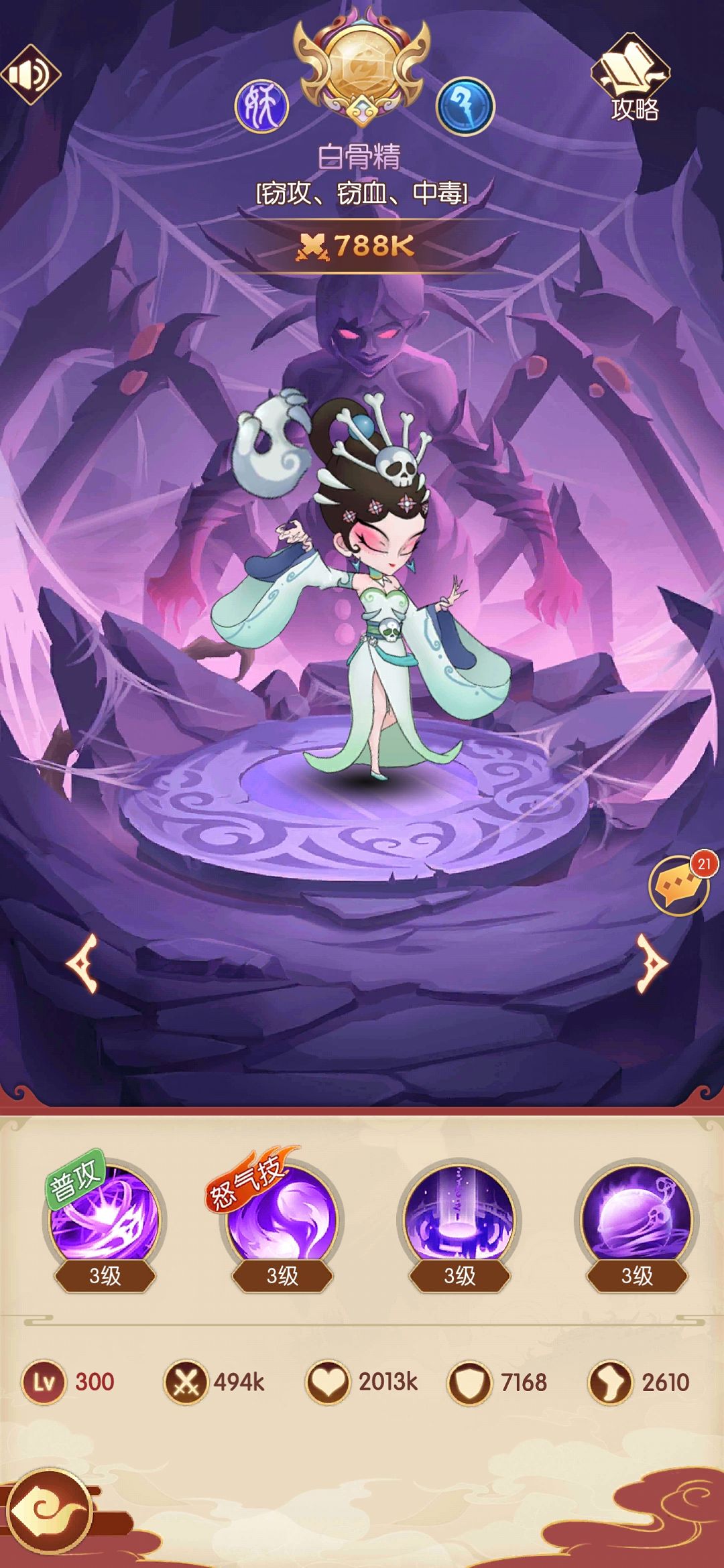 话说在原版西游记中唐僧师徒一行人遇到的老妇人老丈人以及村姑全是白骨精所扮演,在白骨洞剧情模式中也是如此,只不过在遇到老丈人之前老妇人的属性和白骨精一样都是明标着的妖族,所以大家会使用仙族进行克制,但是老丈人标的是魔族,玩家们使用佛族正好为白骨精的妖族克制,仅减少33%的伤害,白骨精打我们还会额外造成33%的伤害,这才是大家无法通关的原因。