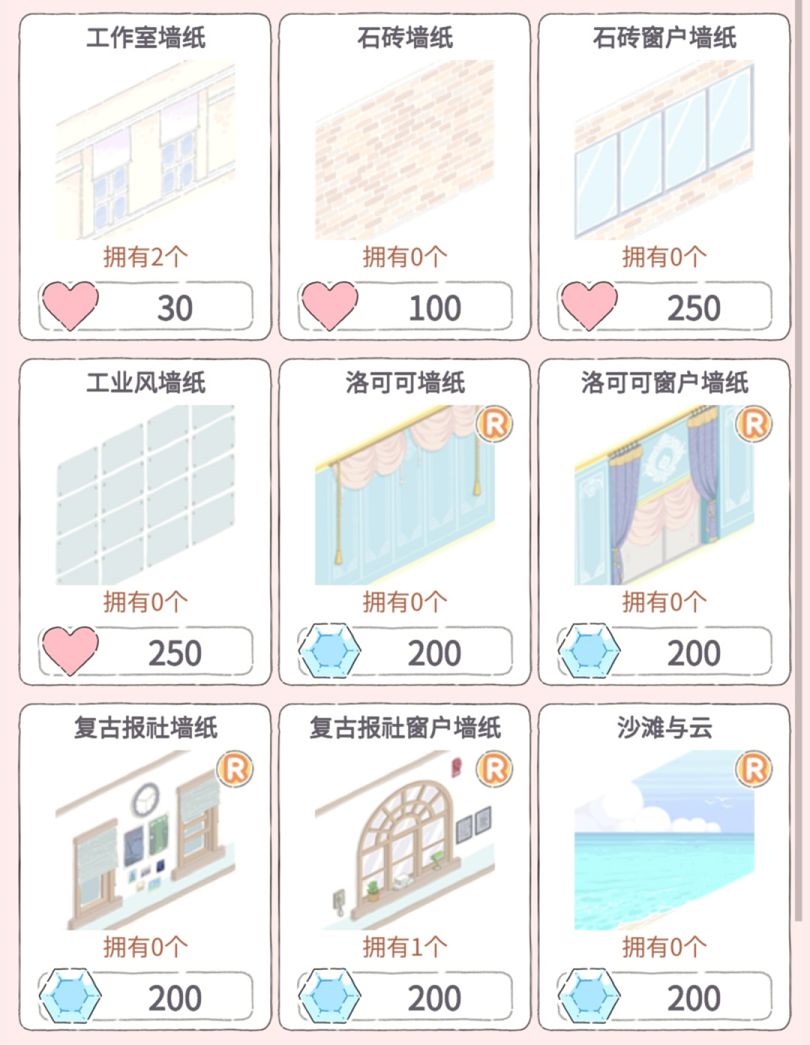 壁纸、地毯这类直接购买的家具可以选择各种颜色和款式,玩家们可以点击家具进入详情页查看装饰效果,是否符合自己的预期。家具款式不同,可以增加的宅家舒适度也不同,沙发、猫爬架等小家具的宅家舒适度并不如壁纸和地毯高。