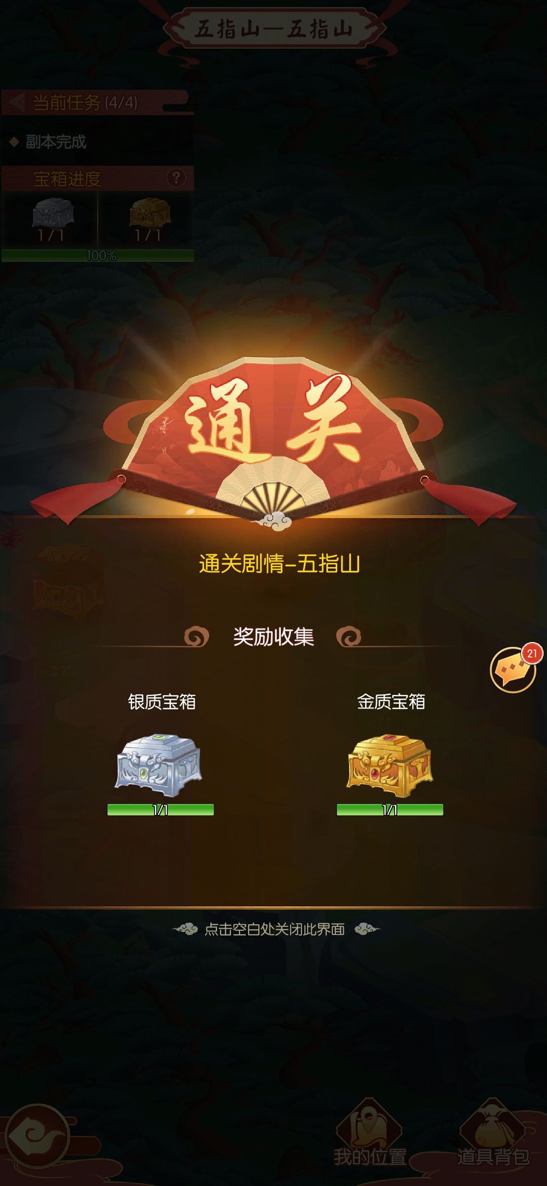 由于这是第一个副本关卡,难度还是相对来说比较低的,而且整个路径不需要遇到任何的怪物并且与其战斗,看到银色宝箱和金色宝箱的时候击一下即可获取奖励,奖励会放置在右下角的道具背包内,退出重温经典玩法的时候优先将其取出即可。