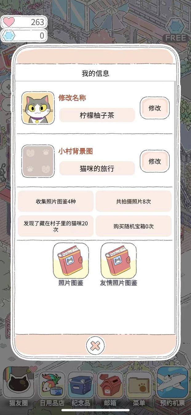 游戏内图鉴分为两种,分别是照片图鉴以及友情图鉴,这两个图鉴只要解锁任意一个都是可以的。解锁图鉴的方法也是很简单的,玩家只需要让自己的猫咪出去旅行,在旅行的过程中就会拍摄照片,携带日用品还能获取更多稀有照片,日用品可通过做任务获取,也可以通过购买获取。