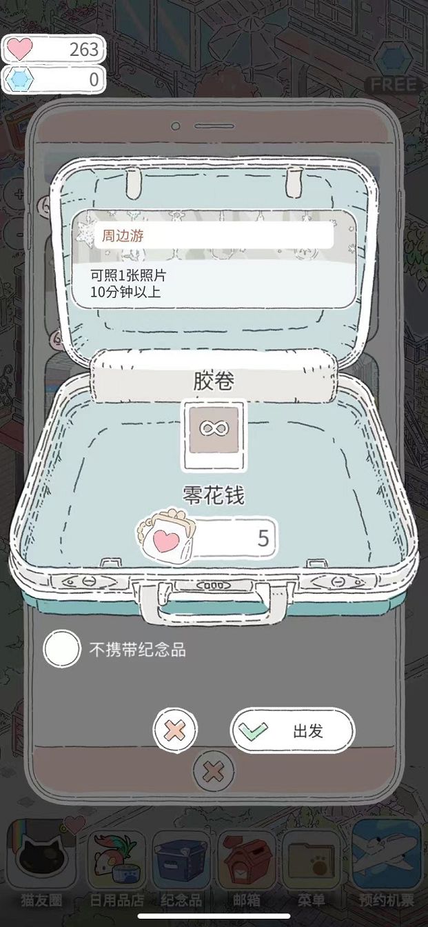 作为一个新手玩家,首先要做的就是需要了解游戏内的玩法,这款游戏主打的就是休闲娱乐,玩家将养成一个猫咪,让其去旅行,在旅行的过程中会结识新的伙伴,以及拍摄不同的照片,将照片发布到社交网站上可以获取点赞,这个点赞数在游戏内代表的就是货币一样的存在,也就是说,猫咪在旅行的过程中,将为玩家赚取更多的货币。