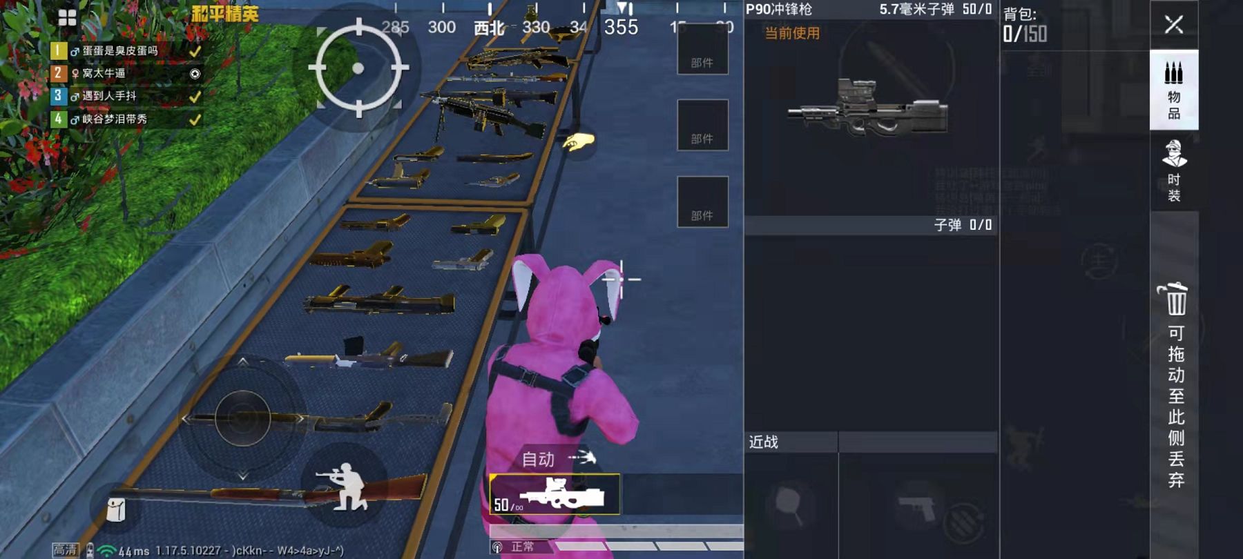 腰射的话P90的水平后坐力和垂直后坐力低到离谱,相当的稳定,而作为冲锋枪近距离腰射是非常实用的一项技巧。
