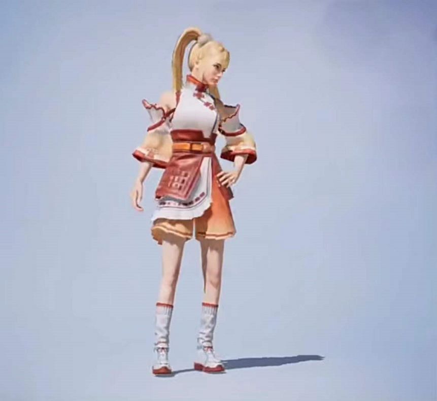 团圆交子是和平精英SS17赛季手册1级解锁的套装,SS17整个赛季都是春节主题,里面的套装都非常喜庆。这款套装的女版为双马尾,采用长靴、短裙、宽袖上衣的搭配,其中两个肩膀都是漏出来的,非常的清爽。这个套装的依旧是红白的配色,不过到裤尾红色蜕变成了橘红,加上白白的大长腿,看上去非常好看。